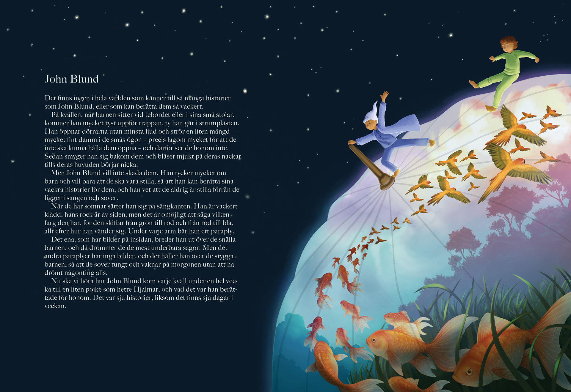 ✱ Ett fiktivt projekt som gick ut på att ta fram illustrationer till H. C. Andersens John blund. Sagan är fartfylld och magisk, vilket återspeglas i illustrationerna.