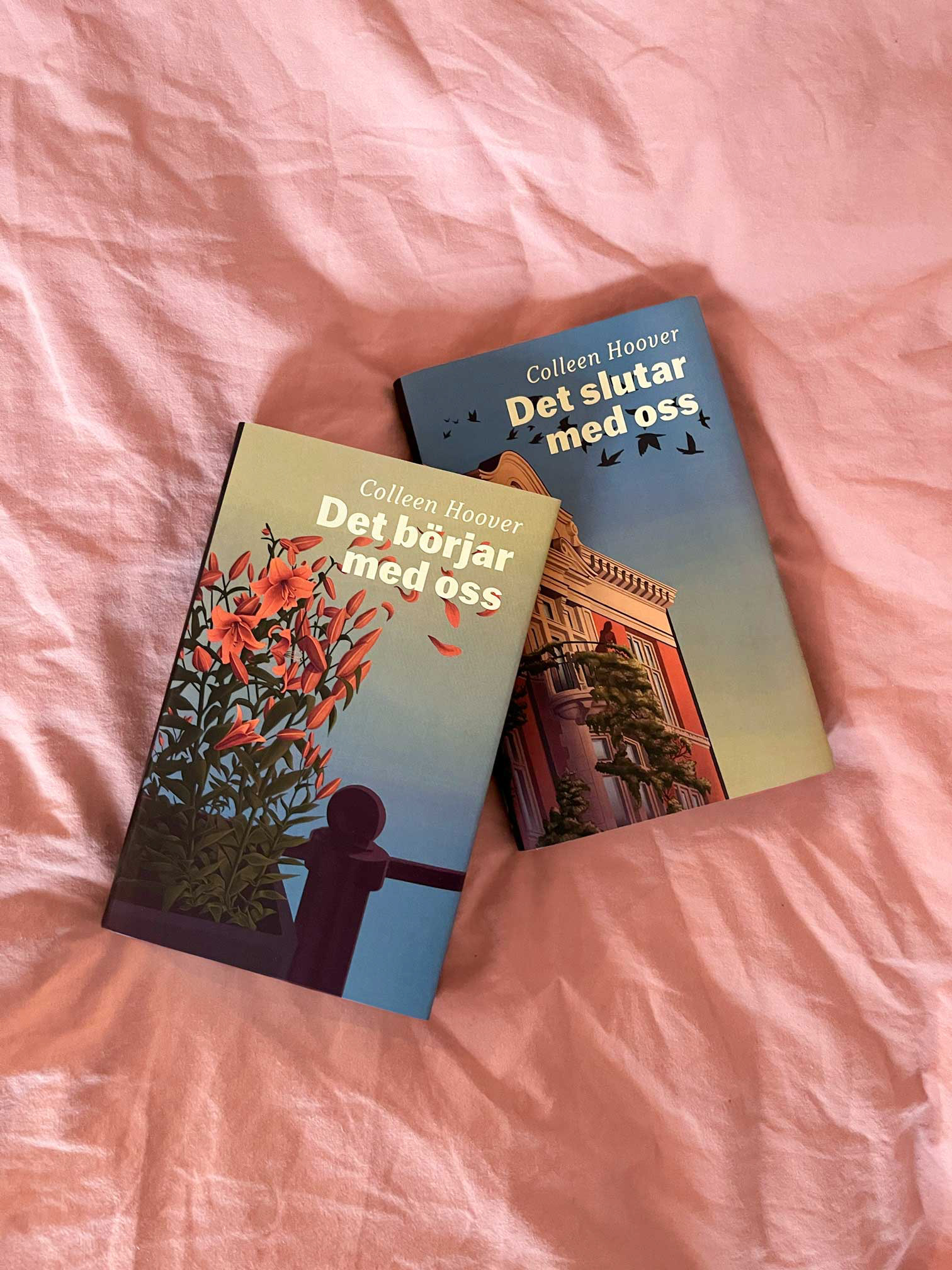 ✱ Bokomslag för Colleen Hoovers duologi Det slutar med oss och Det börjar med oss! Koncept, illustration och design knyter ihop de två böckerna med symbolik och färgval.